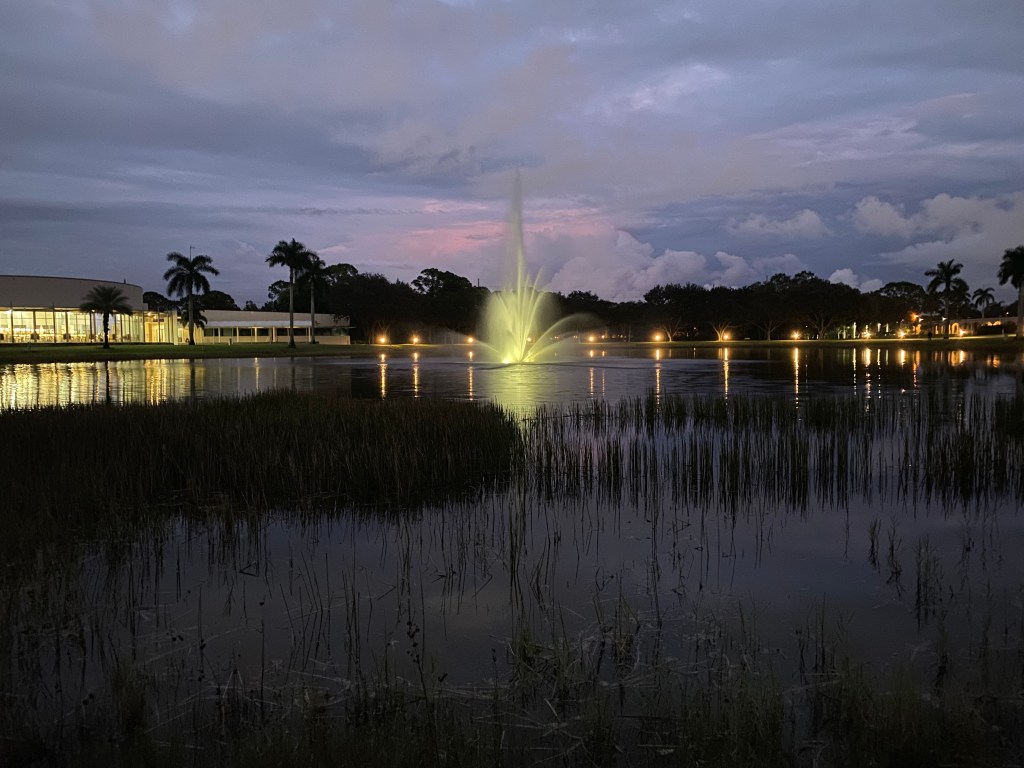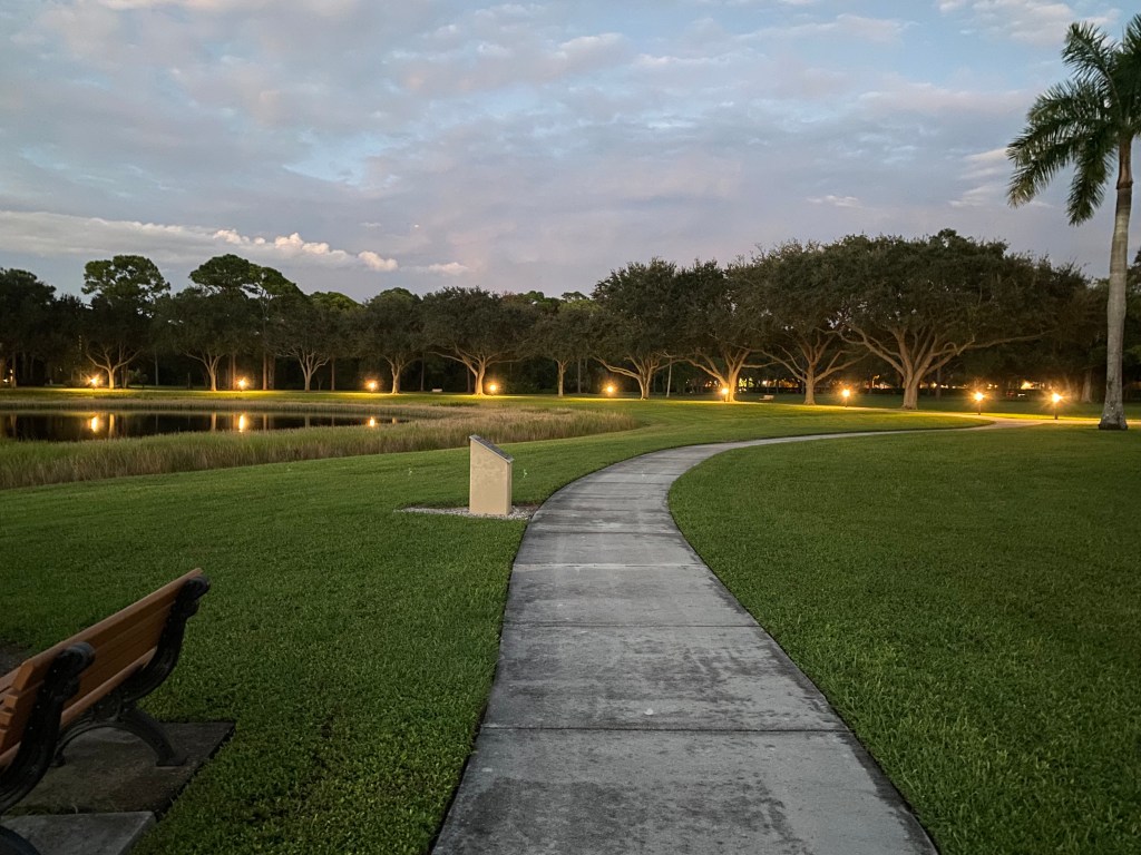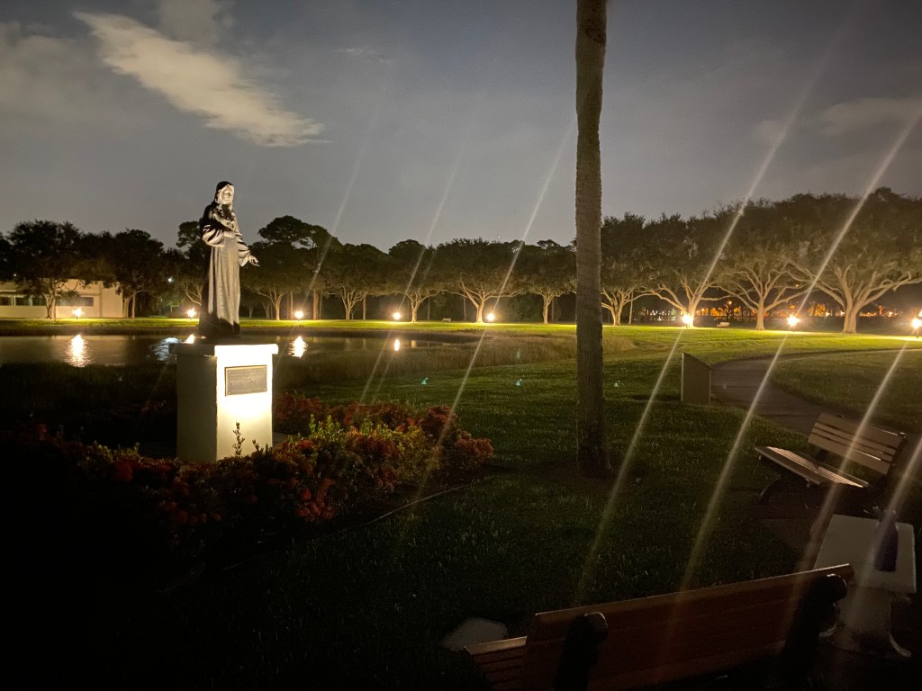 Photo: My evening routine to decompress: Rosary walk around the lake, breathing and taking in the wonder of God’s evening displays of wonder! St. Vincent De Paul Regional Seminary, Boynton Beach, FL.