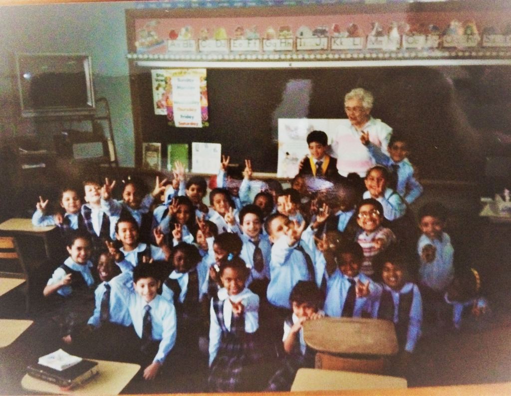 Photo: First grade class I assisted with during my time in the pre-novitiate with the Franciscans of Holy Name in the Bronx, around 1990.