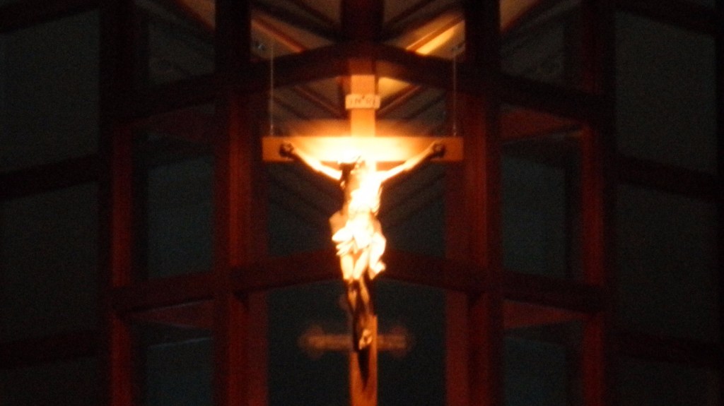Photo: Jesus frees us from our suffering when we align ours with his. Crucifix at St Peter Catholic Church, Jupiter, FL.
