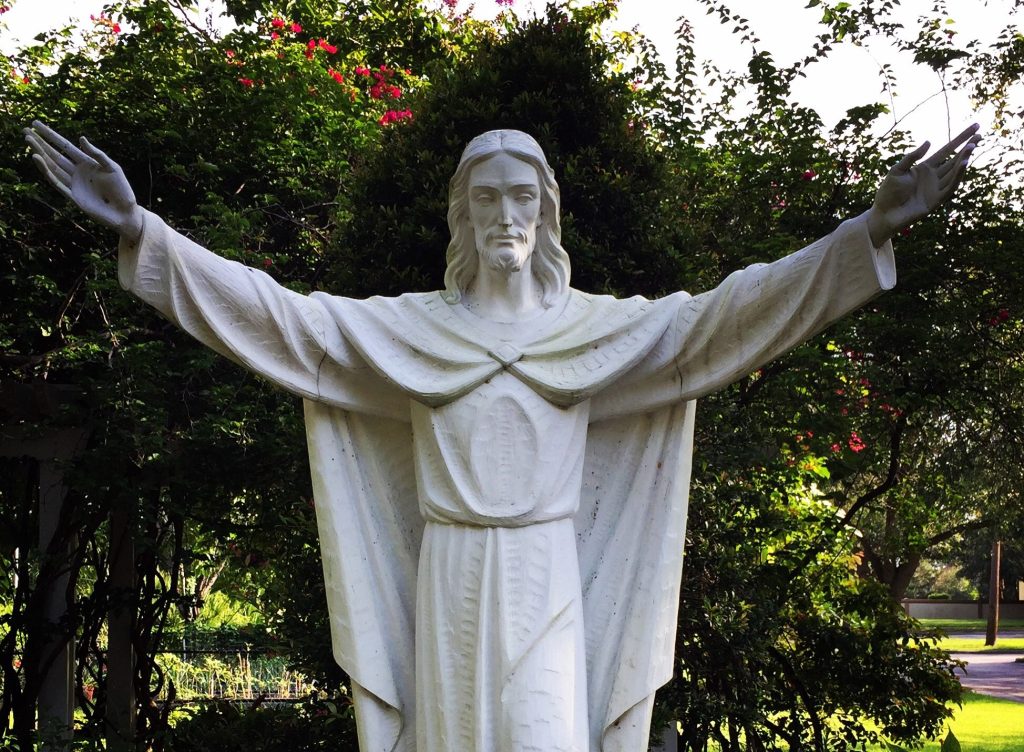 Photo: Jesus’ arms are wide open to embrace us all in his love. Garden of St. Peter Catholic Church.