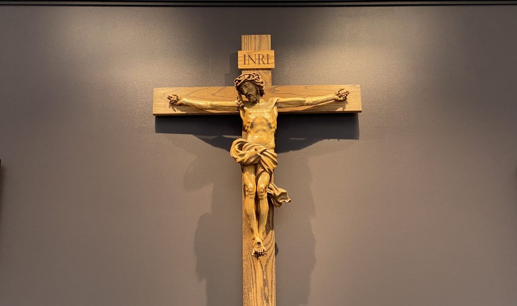 Photo: Crucifix outside the dining hall at University of St. Mary of the Lake.