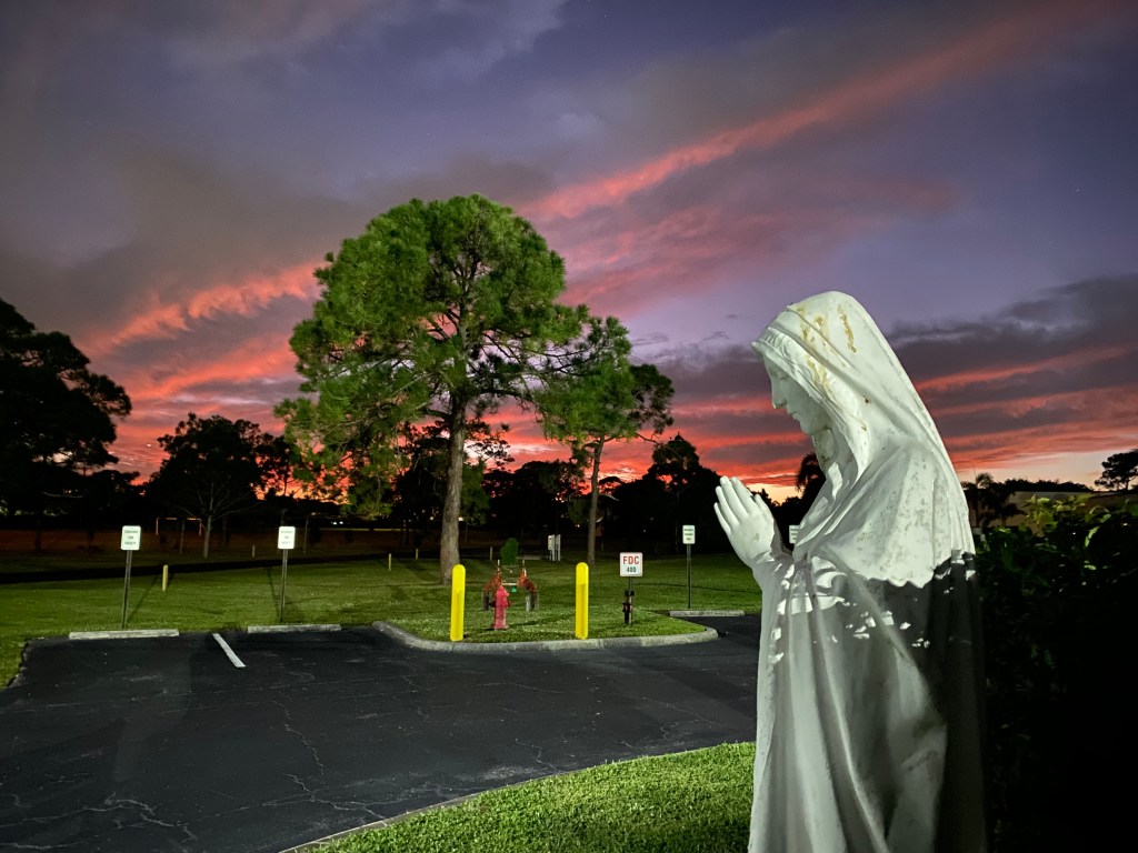 Photo: Looking up to the things of heaven as I began my Rosary walk – St. Vincent De Paul Regional Seminary, Boynton Beach, FL.