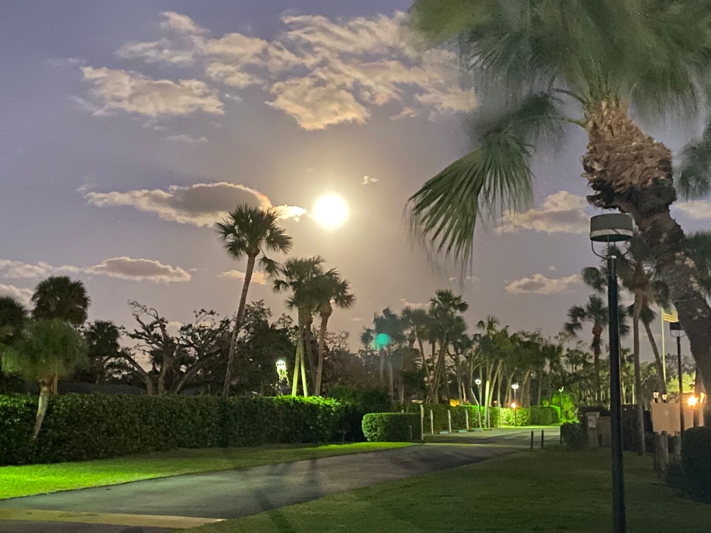 Photo: Full moon rising during Rosary walk back in November.