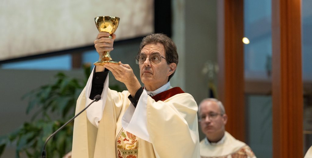 In the miracle of Jesus multiplying the five loaves and three fish to feed the thousands, he was setting the stage for the miracle we get to experience at each Mass. The appearance of bread and wine remains, but its substance, the reality at the core, has been changed to become the Body and Blood of Christ. This miracle we don’t just read about, but can experience and receive him again and again to satisfy the deepest hunger of our souls.