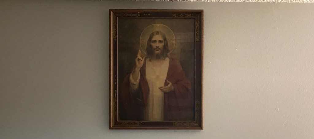 Painting credit: Sacred Heart of Jesus by Charles Chambers, hanging in my bedroom.